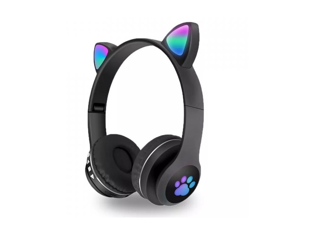 Bezdrátová bluetooth sluchátka Cat Ear s tlapkou jsou velká extravagantní sluchátka pro připojení k přehrávači pomocí Bluetooth. Disponují několika možnostmi přehrávání, nízkou hmotností a výstředním designem s barevnýma ušima a svítícíma tlapkama.