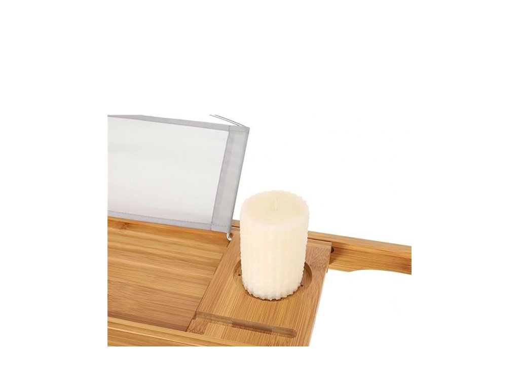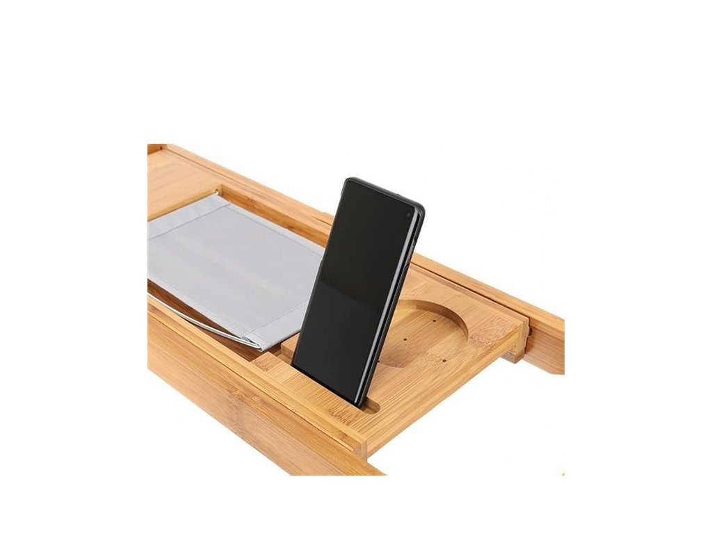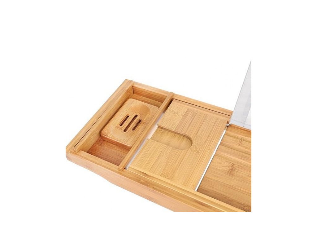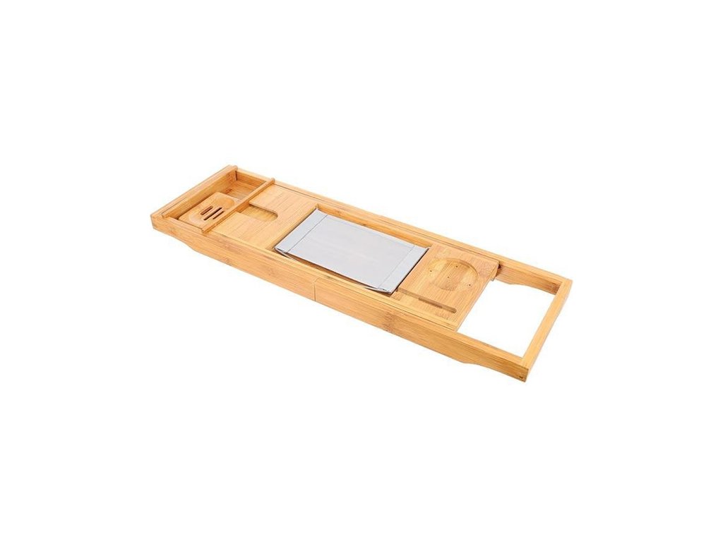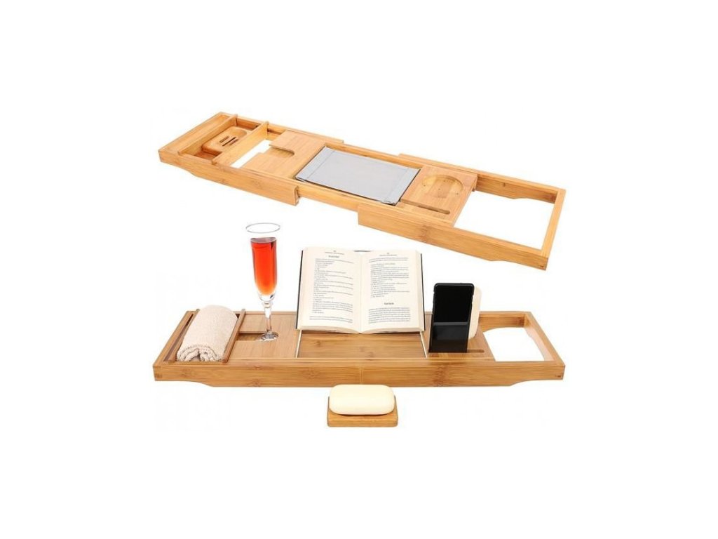 Tento vysoce kvalitní servírovací stolek, který je vyrobený z bambusu pro dokonalou relaxaci ve vaně s odkládací plochou, místem pro odkládání mýdla, mobilu, výklopným stojánkem na knihu a držákem na skleničku na víno. Délku lze plynule nastavit mezi 71 - 98,5 cm, takže je vhodný pro většinu van.