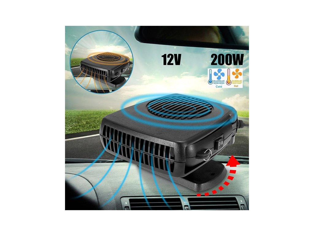 Topení do auta, rozmrazovač oken, ventilátor. Výrobek má funkce horkého a studeného vzduchu. Přizpůsobeno pro napájení ze zásuvky zapalovače o napětí 12 V. Pro volbu funkce slouží spínač umístěný na těle přístroje. Nastavitelná montážní konzola pro lepicí pásku. Zařízení je chráněno pojistkou umístěnou ve spodní části ventilátoru, v případě zničení je třeba ji vyměnit za účinnou se stejným vybavovacím proudem.