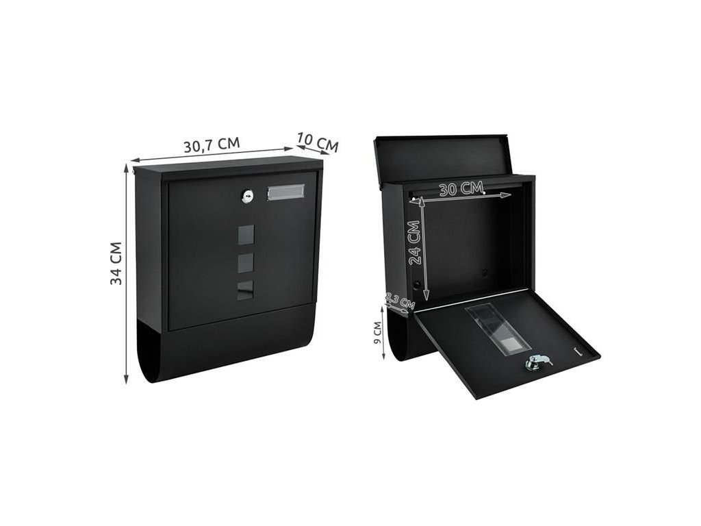 - KRYTÁ DOPISOVACÍ VLOŽKA / FORMÁT A4 – schránka má štěrbinu, která je zajištěna speciálním krytem, který chrání korespondenci před povětrnostními vlivy. Do krabice se snadno vejdou i písmena velikosti A4.