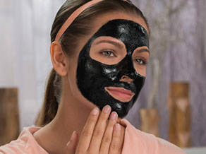 Silnou vrstvu masky si prsty důkladně rozetři po obličeji. Vyhni se místům s poškozením kůže a opatrně také okolo očí a vlasů – chceš si sloupnout černé tečky, ne obočí.