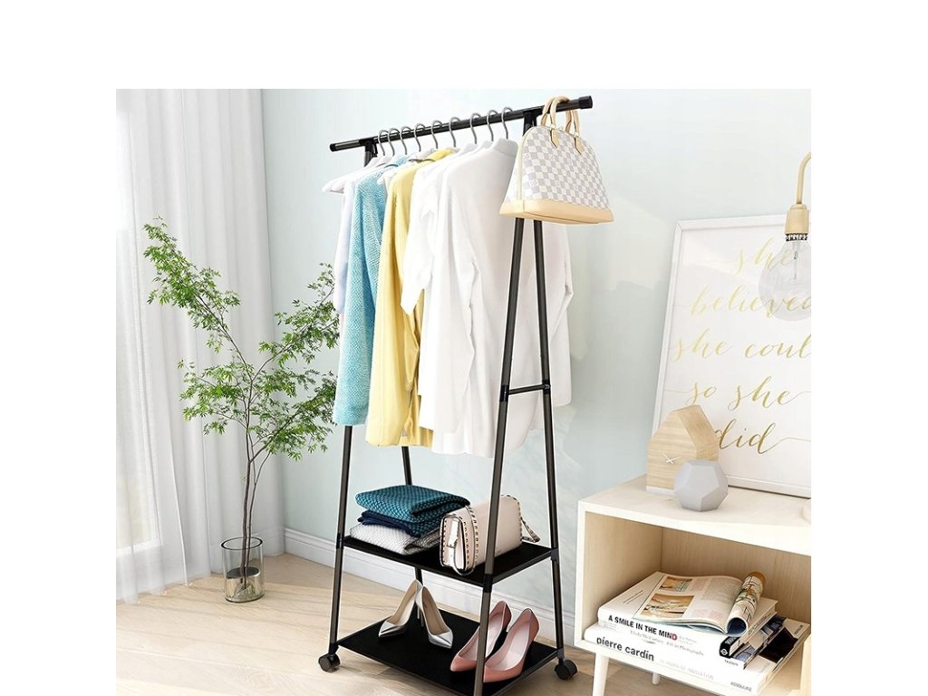 Stojanový věšák na oblečení v černé barvě je perfektním řešením pro uspořádání našich bund, košil nebo jiných částí šatníku.
